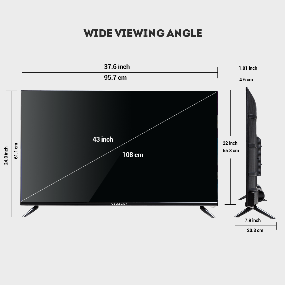 Cellecor Smart TV E-43P ( 43 inch ) Full HD LED Smart Android TV with 1920x1080 resolution, 24W Dual Speakers Sound, Latest Android Version, Bluetooth Connectivity, Chromecast Built-In and Google Assistant