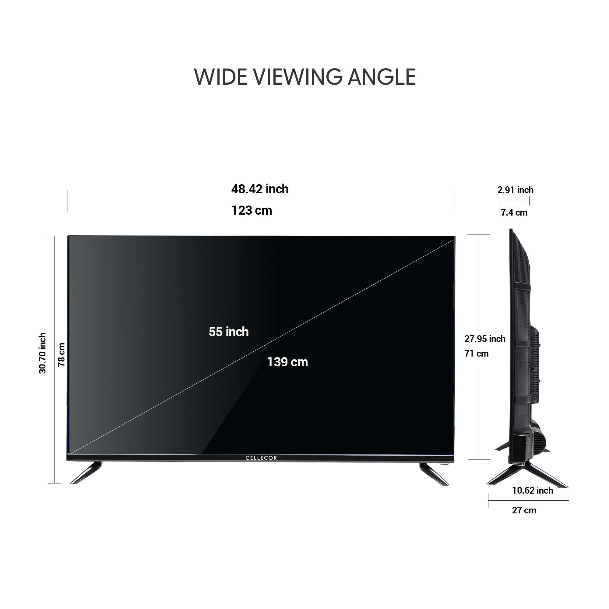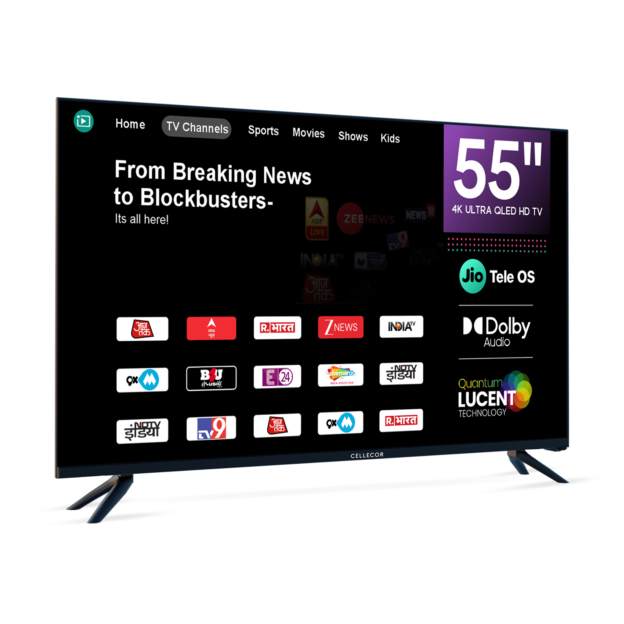 The Cellecor 55-inch 4K Ultra QLED Smart TV's larger, clearer, and more colourful display is intended to provide an immersive and high-end watching experience. With its QLED screen technology and 4K Ultra HD resolution, it creates rich colours, deep contrast, and improved clarity, giving every scene a more realistic appearance.