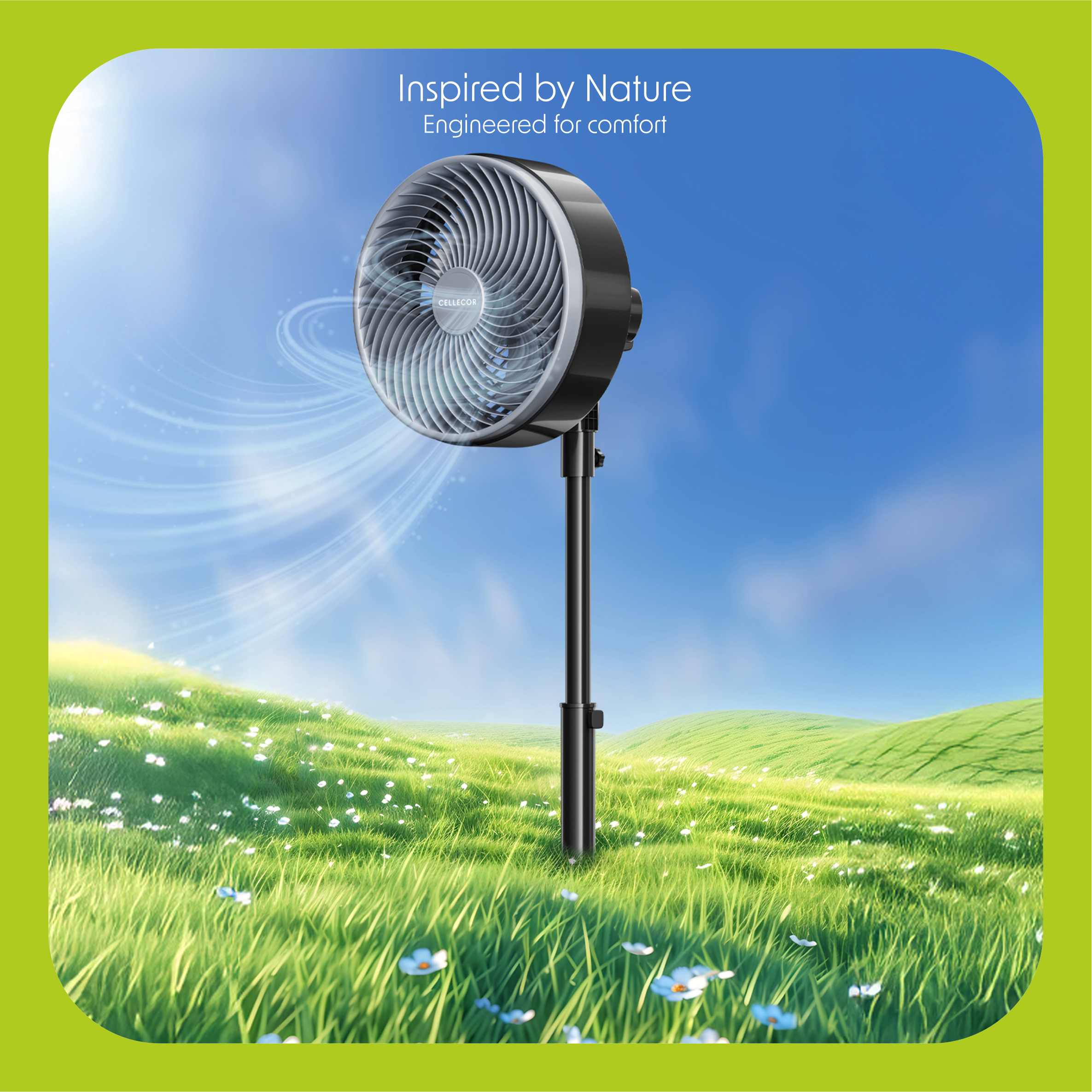 Introducing the Cellecor AeroElite CPF105L Pedestal Fan, engineered for powerful performance and superior airflow. Equipped with a high-speed 2200 RPM full ball bearing motor and 5 PP blades, this fan delivers strong, consistent air circulation even in extreme heat. The durable metal stand with a round base ensures stability, while 2D rotation provides wide-area air coverage. Designed for both home and commercial use, the AeroElite combines performance, safety, and durability at an affordable price.