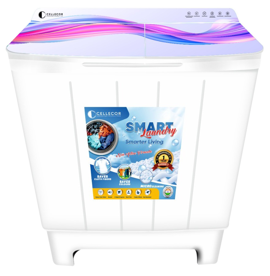 Cellecor C85 Semi Automatic Washing Machine with Anti Rust Body, 35 Min Soak Function, Collar Scrubber, Lint Filter, 3 Wash Programs, Buzzer, and Large Capacity Tub