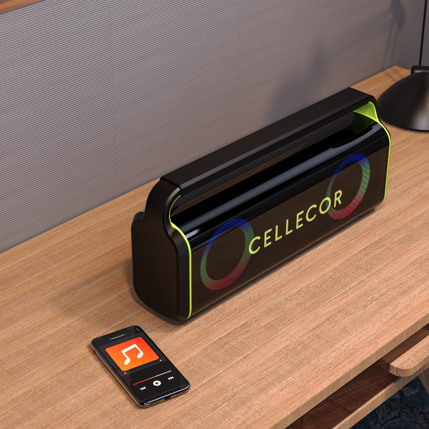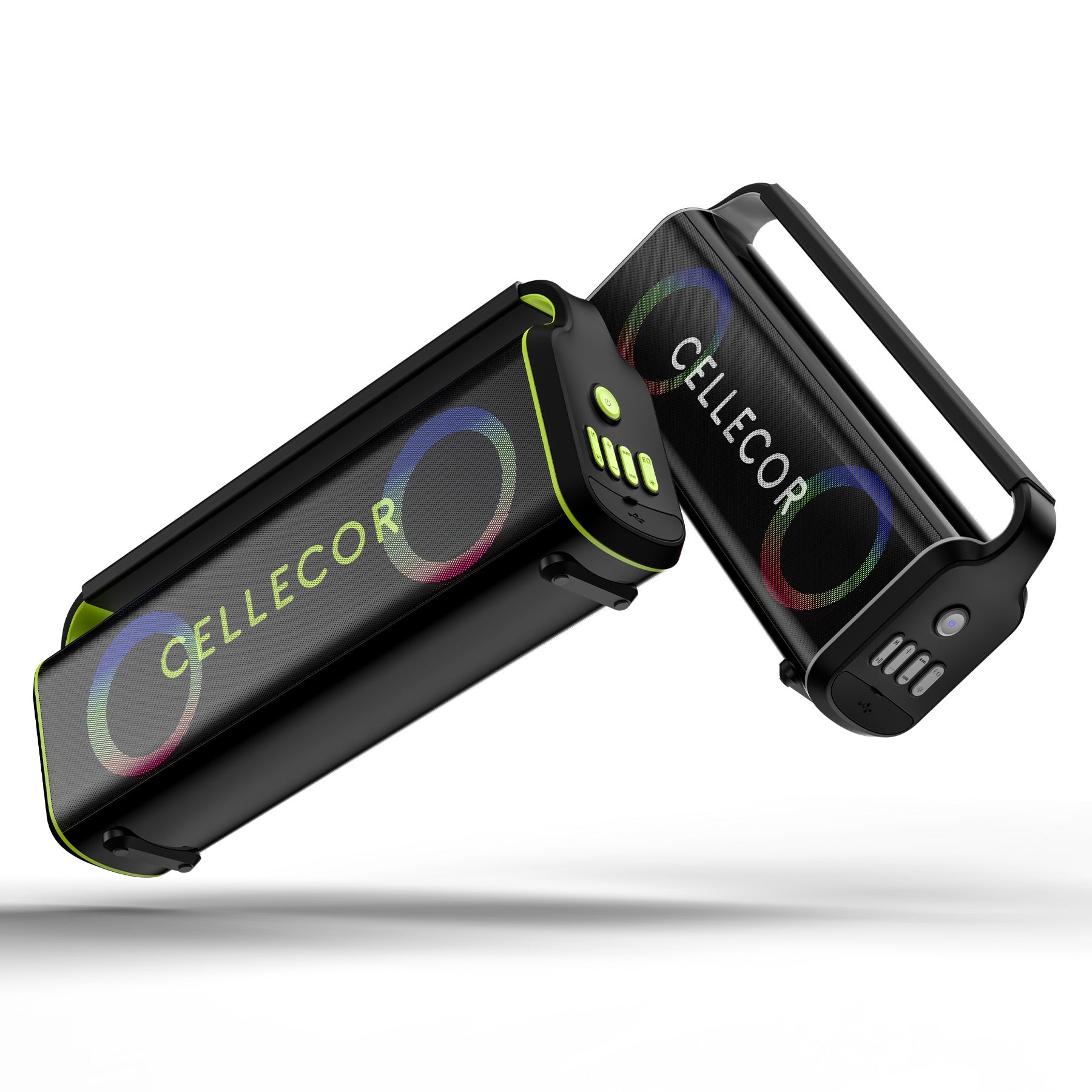 Cellecor CBS-04 Thunder Wireless Speaker with 120W RMS Output comes with 12 hours Playback Time, Eco Adjuster, Multiple EQ Modes, Professional Karaoke Modes, Multiple LED Lights, 3600 mAh Massive Battery, TWS Function, BT 5.3, FM, SD Card Port, AUX, and USB Compatible