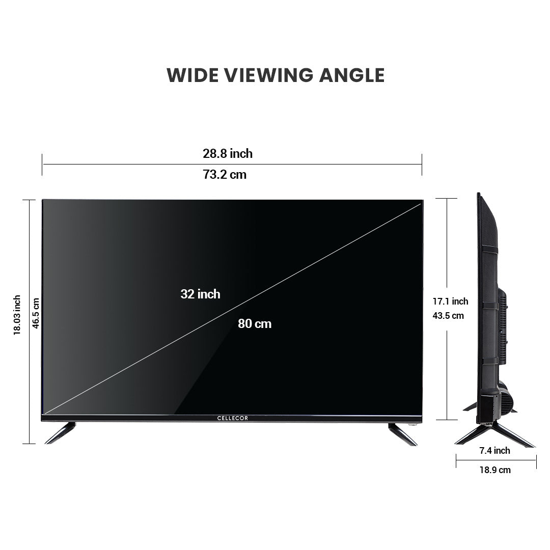 Feel the captivating entertainment with the Cellecor CE32H PRO HD QLED Smart TV (32 Inch). Featuring a vibrant HD QLED display, bezel-less design, and powerful 24W speakers, it delivers stunning visuals and cinematic sound. Enjoy swift screen mirroring, smooth app performance with reliable memory, and peace of mind with a generous 2-year warranty.