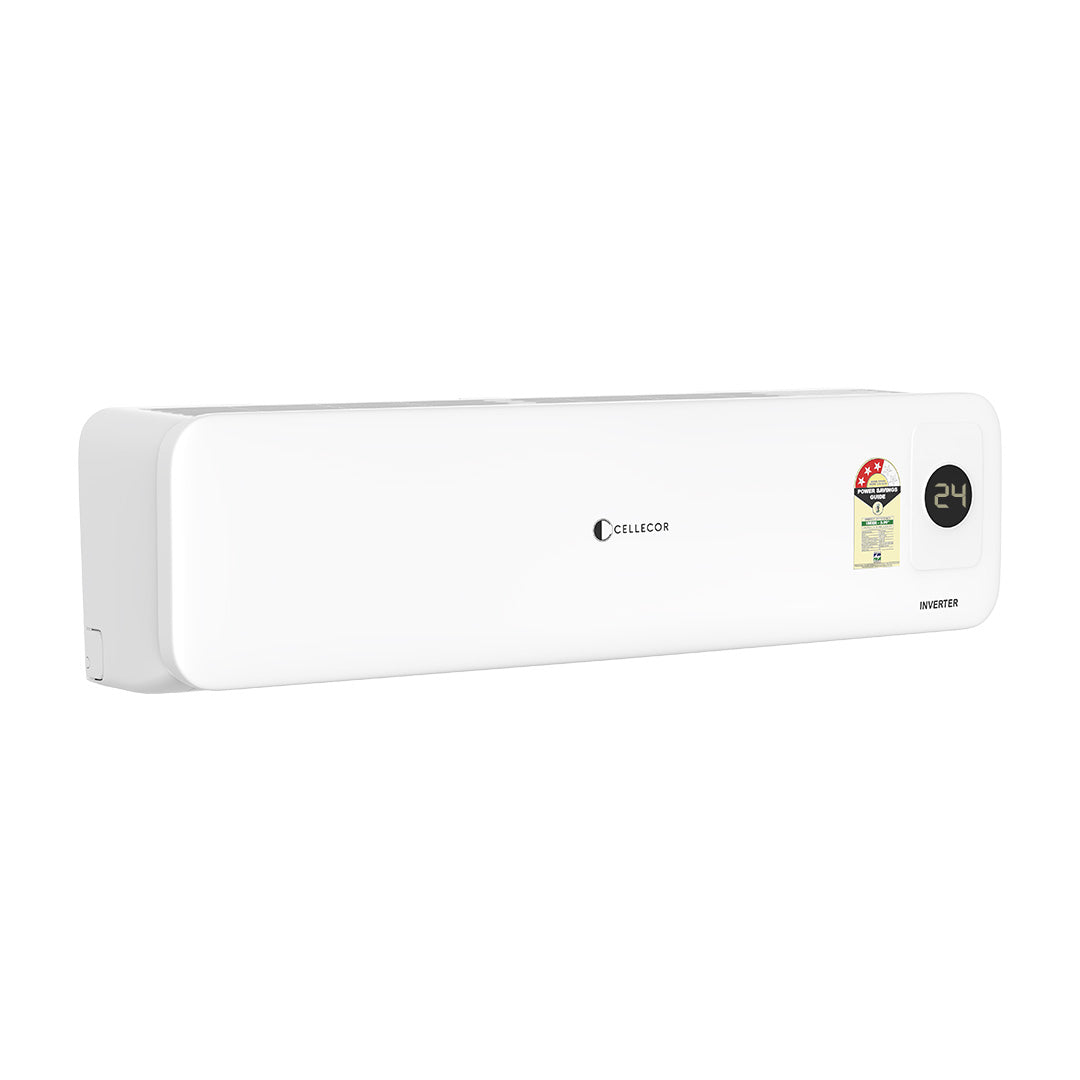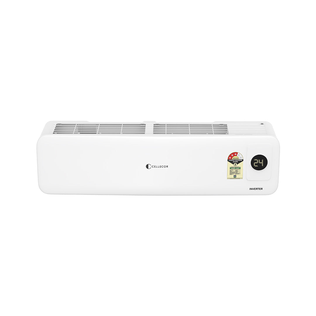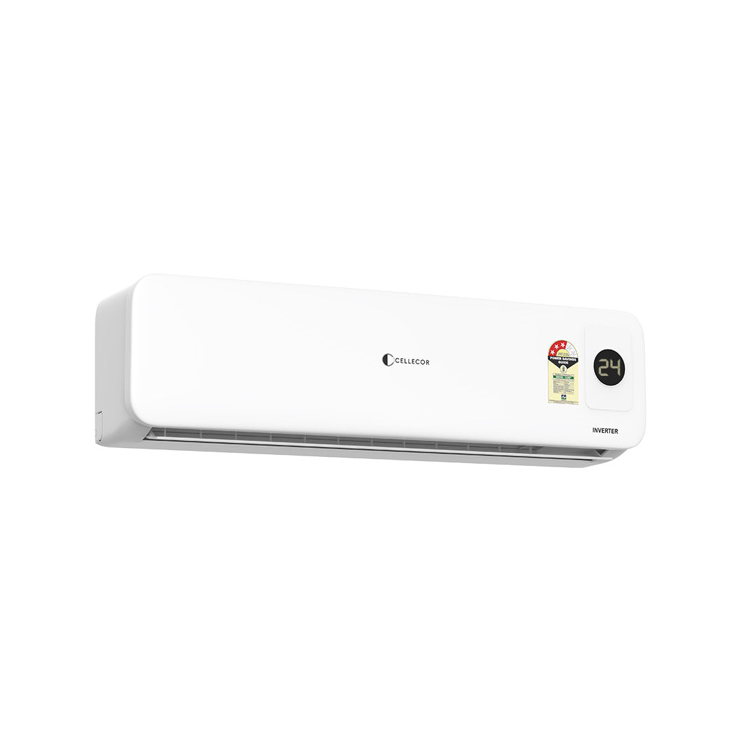 The Cellecor CE15T Inverter Split AC offers 4-way swing for even cooling, Stabilizer-Free Operation for cost-saving protection, and long-range airflow ideal for larger rooms. With a 5-Year PCB and 10-Year Compressor Warranty, it ensures long-term reliability, while Saving Mode cuts energy use without compromising comfort.