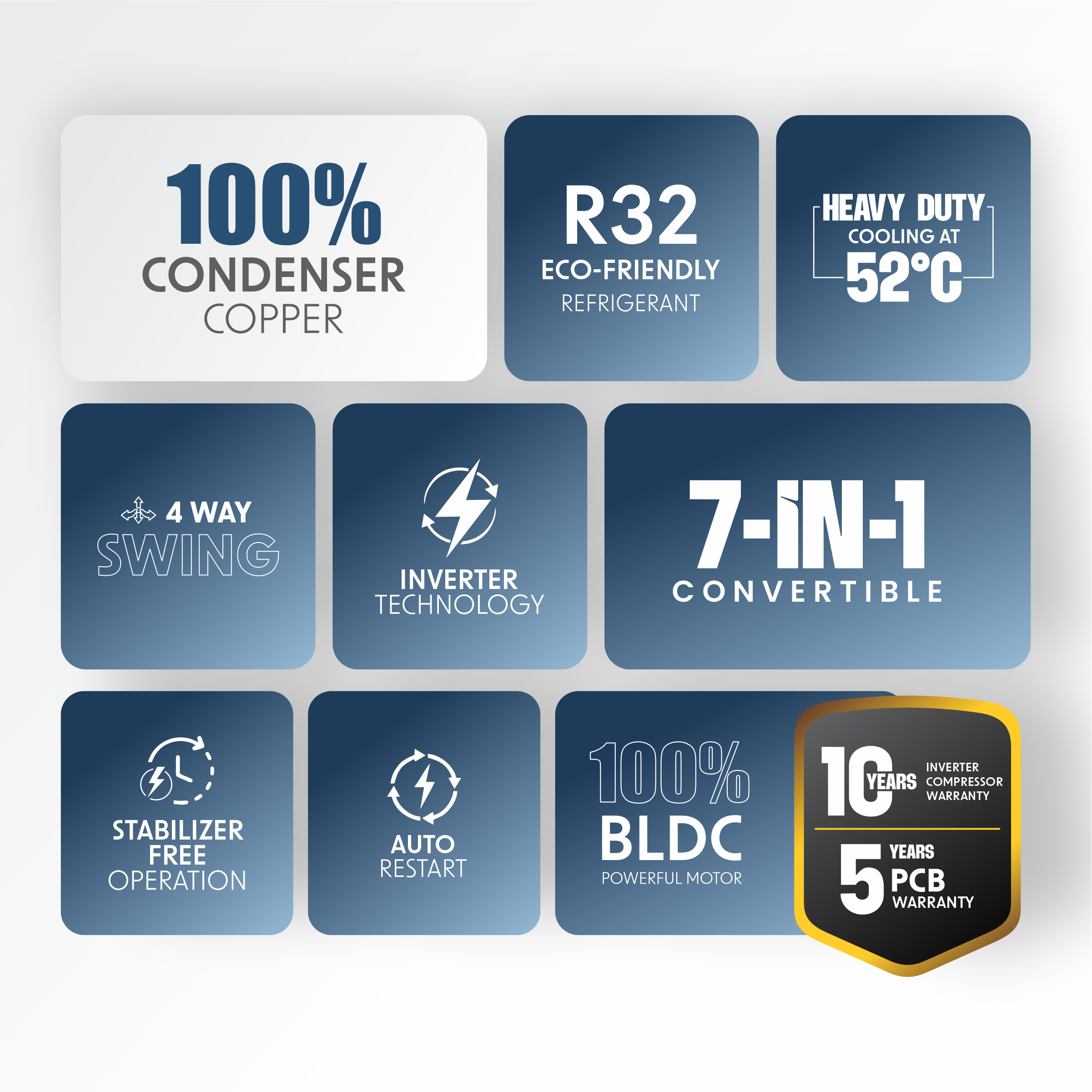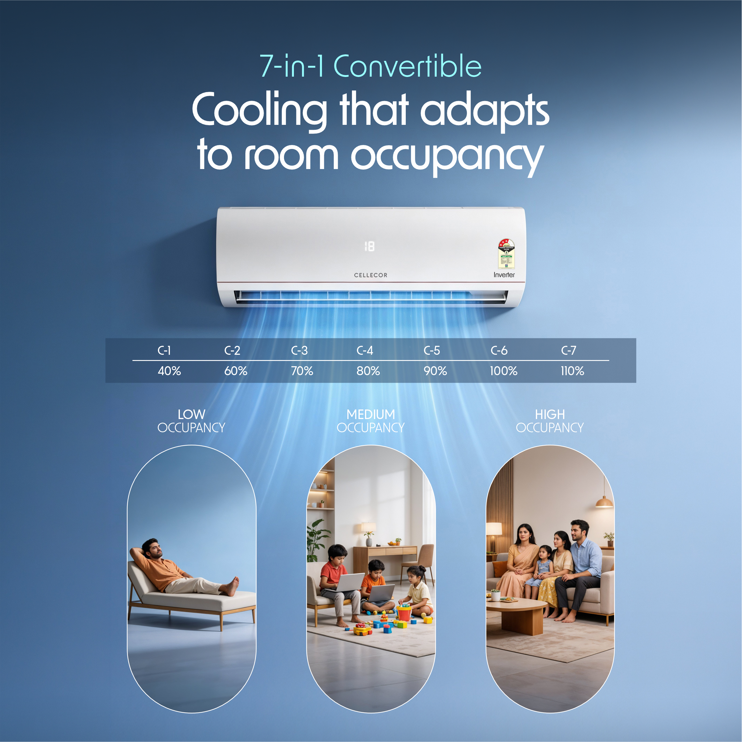 7-in-1 Convertible Modes : Adjust cooling capacity as per room size and usage needs.
