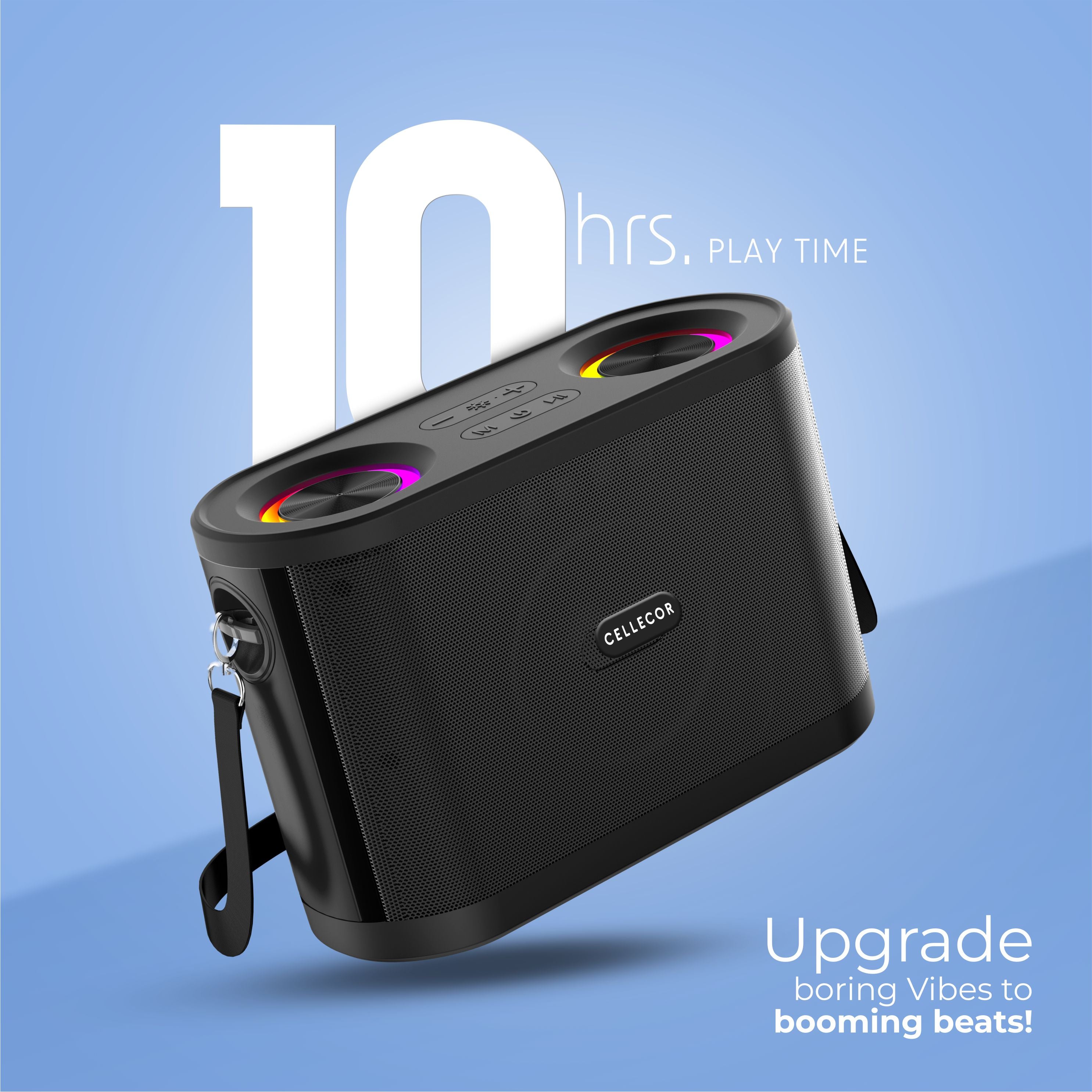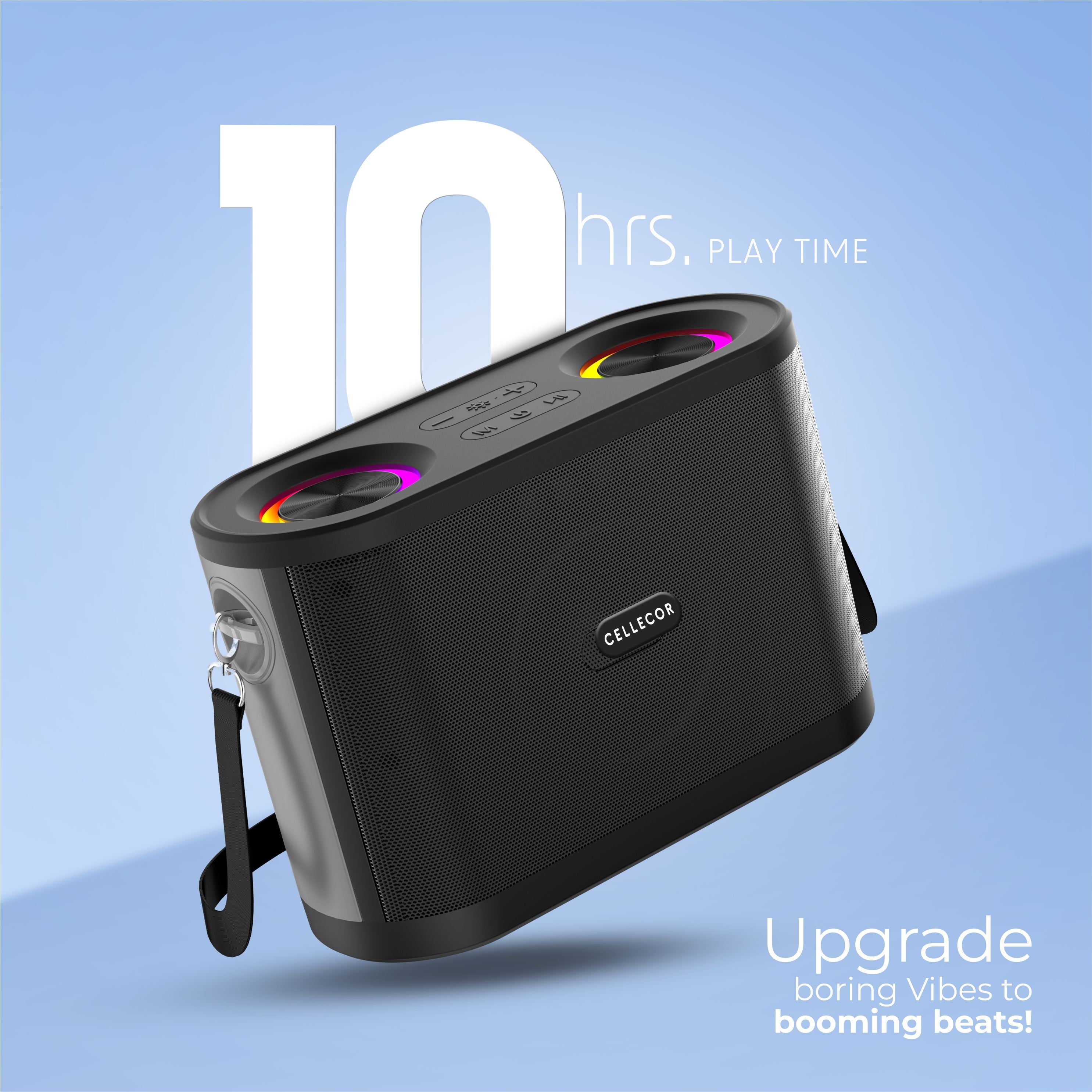 Up To 10 Hours Playtime : Enjoy uninterrupted music for up to 10 hours on a single charge with Cellecor CLB-70 Bluetooth speaker.