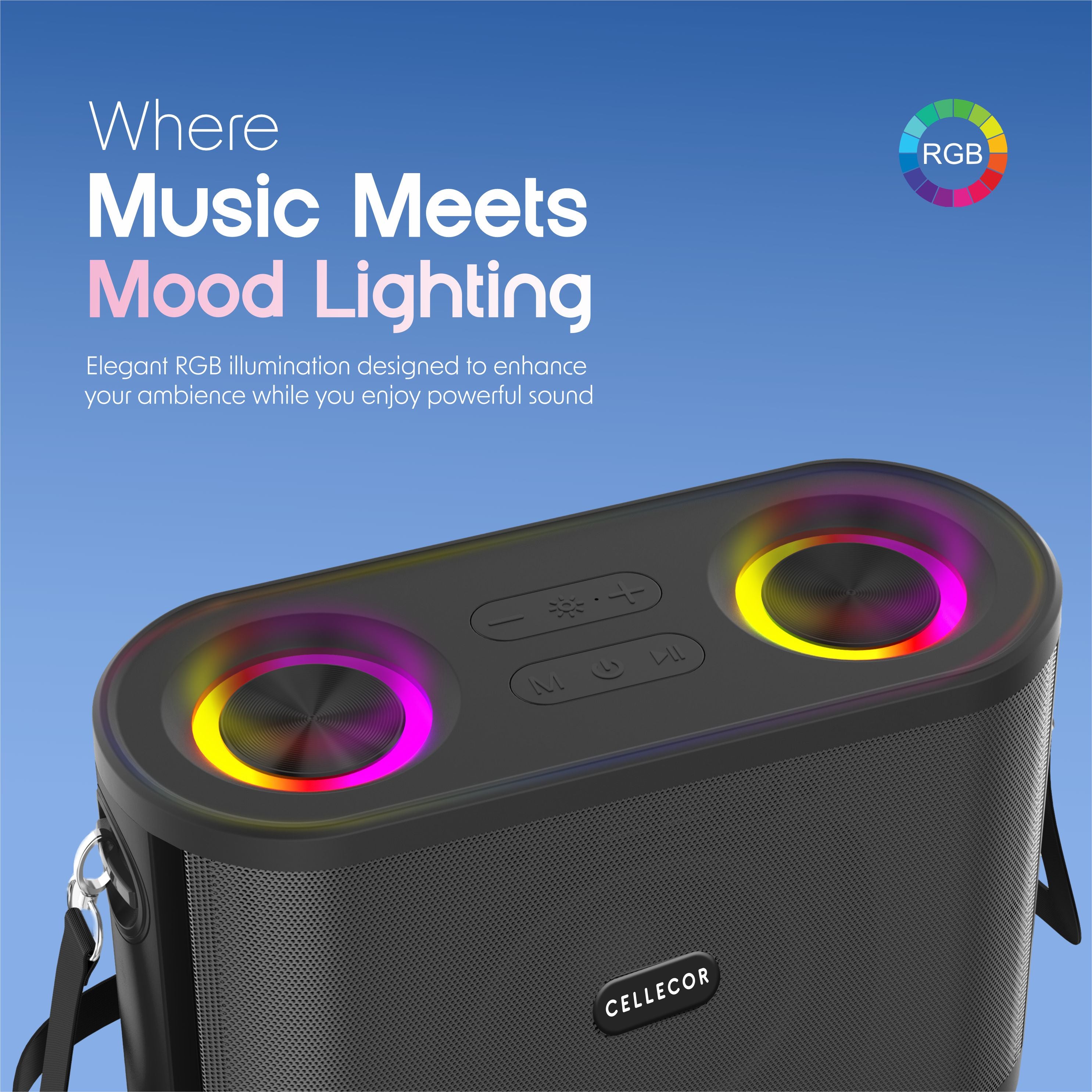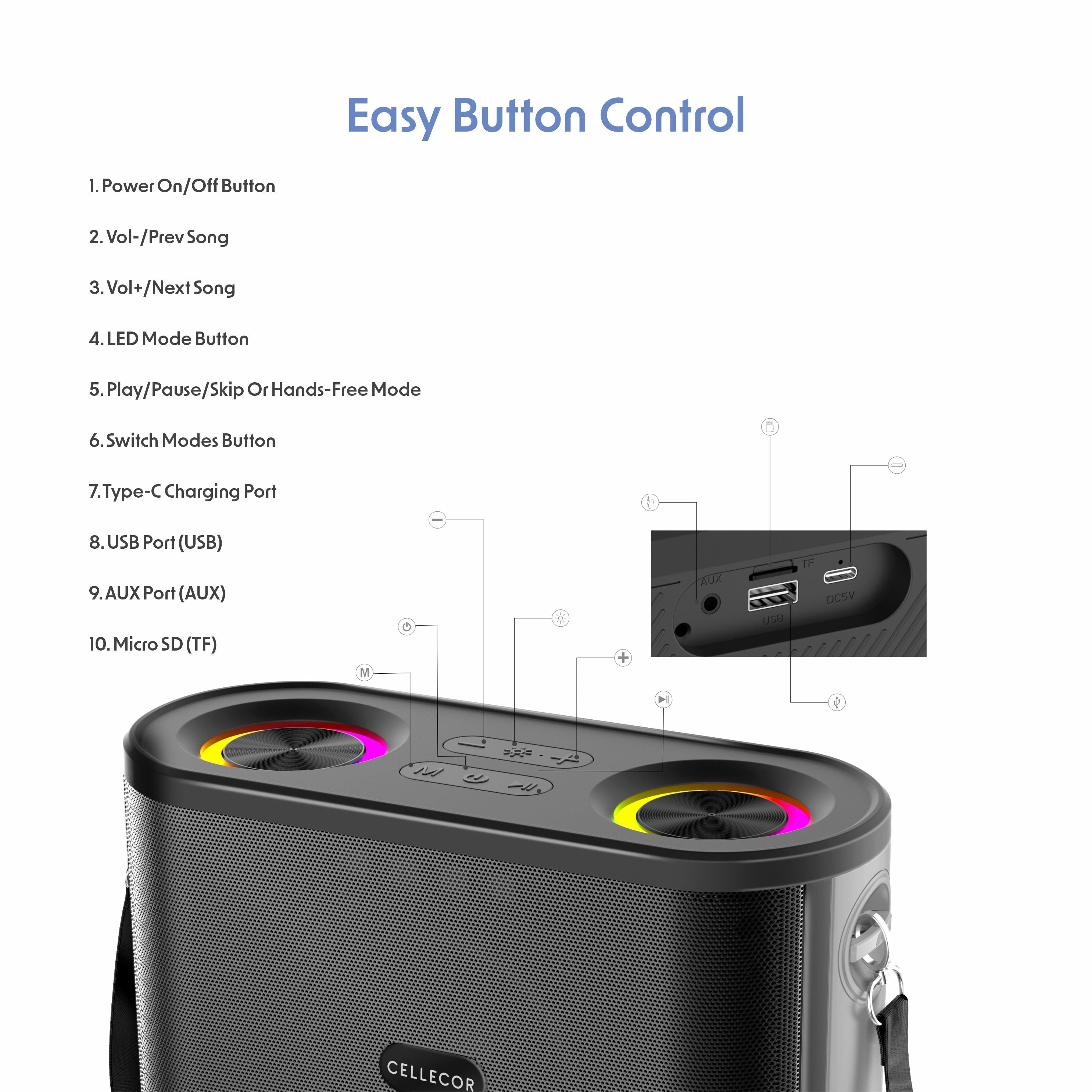 6 LED Light Modes : With the Cellecor CLB-70 Bluetooth Speaker, customize your vibe with six dynamic lighting effects that sync with your music.