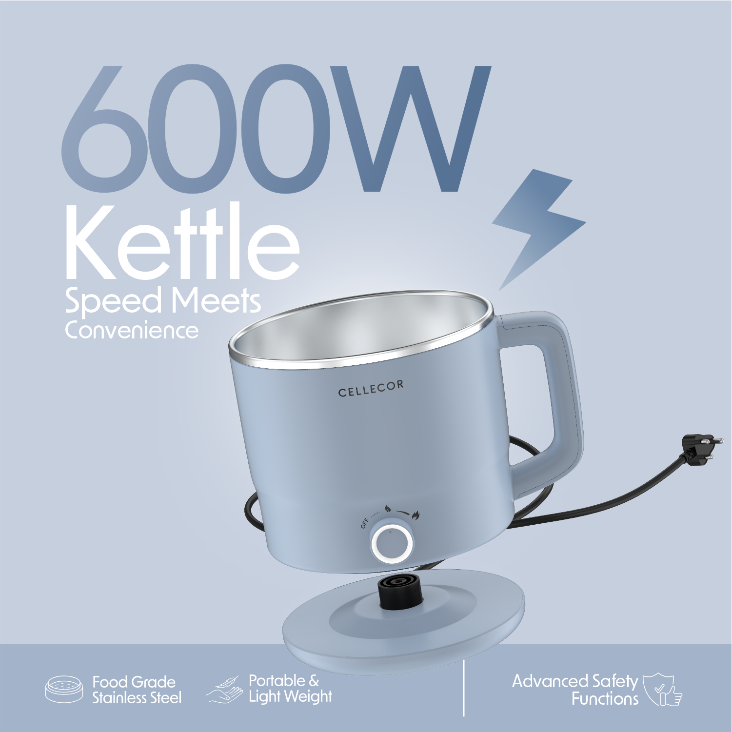 600W Powerful Output : With its 600W powerful output, this Home Chef Multi-Cook Kettle ensures fast heating and efficient cooking, so you can prepare noodles, tea, soups, or pasta in minutes.