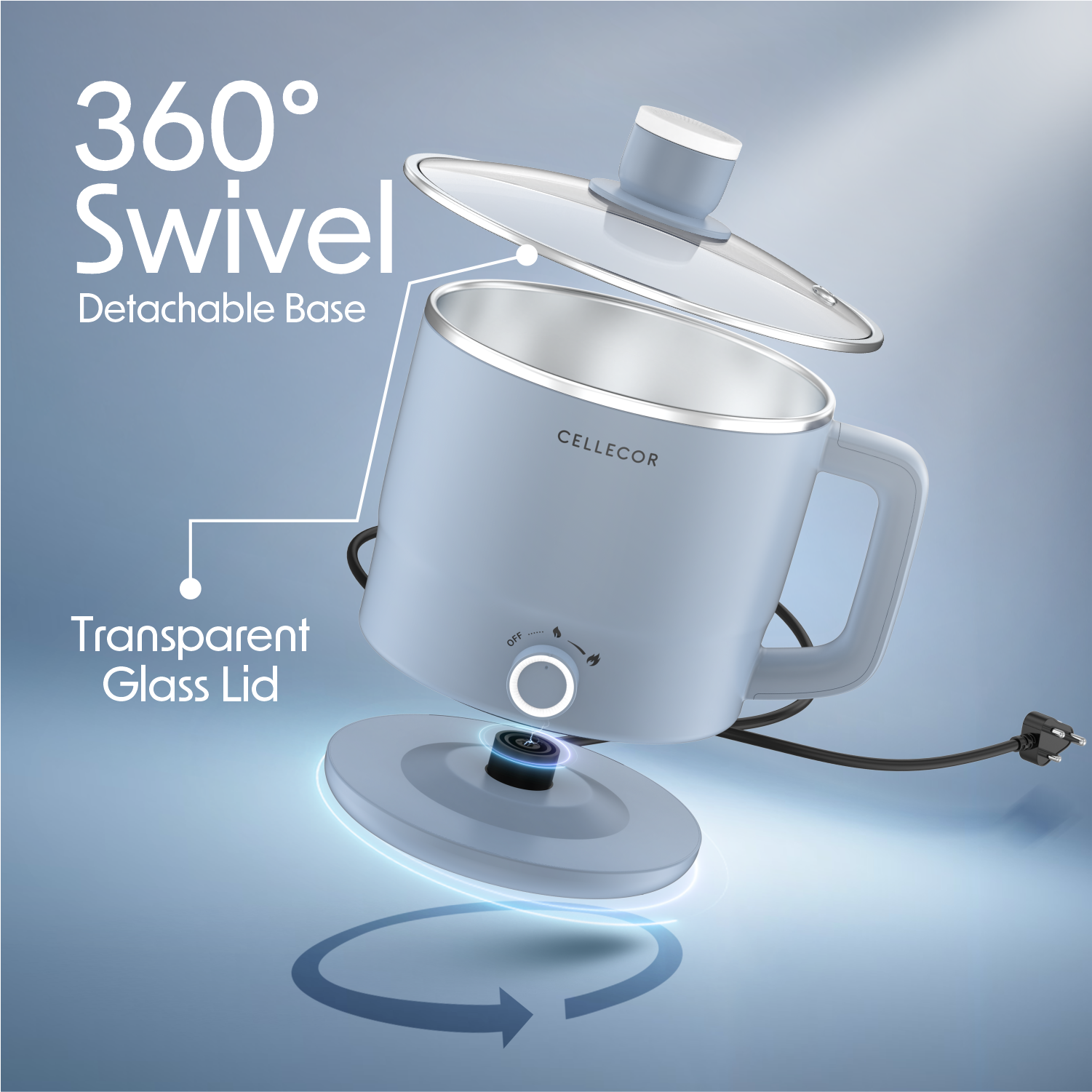 360°Swivel Detachable Base : Convenience meets innovation the compact cooking kettle is designed with a detachable 360° swivel base, making it easy to lift, pour, and serve from any angle.