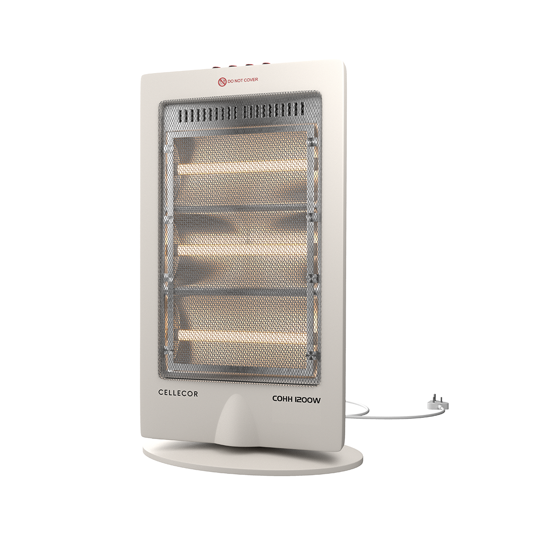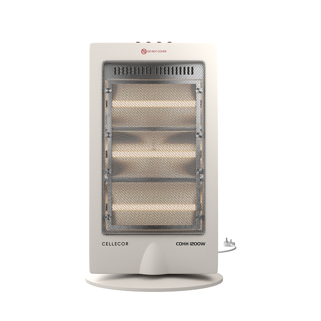Cellecor COHH Radiant Room Heater with 1200W Output Power, 3 Halogen Tube, Instant Heating, Watts Controller, Wide Angle Oscillation, Sleek Design, and Automatic Tip Over Protection