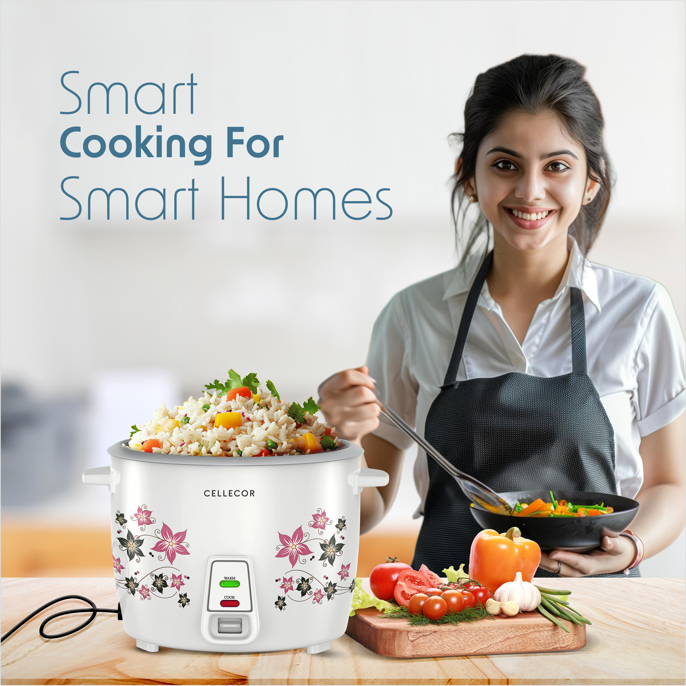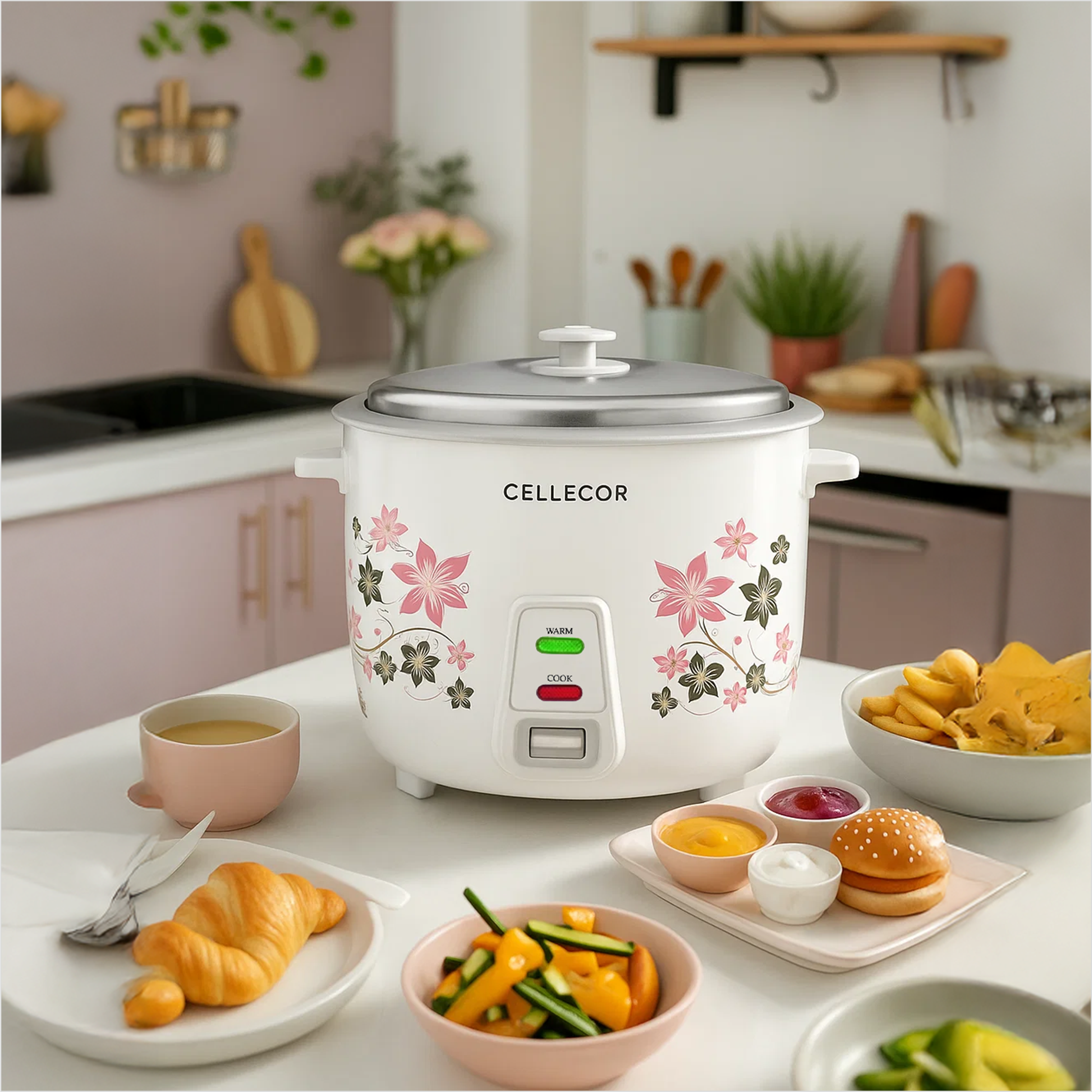 The Cellecor Cook Ease CRC18 Electric Rice Cooker comes with a 1.8L large capacity, perfect for family meals. With 700W fast heating, it cooks rice quickly and evenly. The detachable power cord adds convenience, while cool touch handles ensure safe handling. Backed by a 1-year warranty, the CEK18 rice cooker is your go-to solution for effortless cooking.