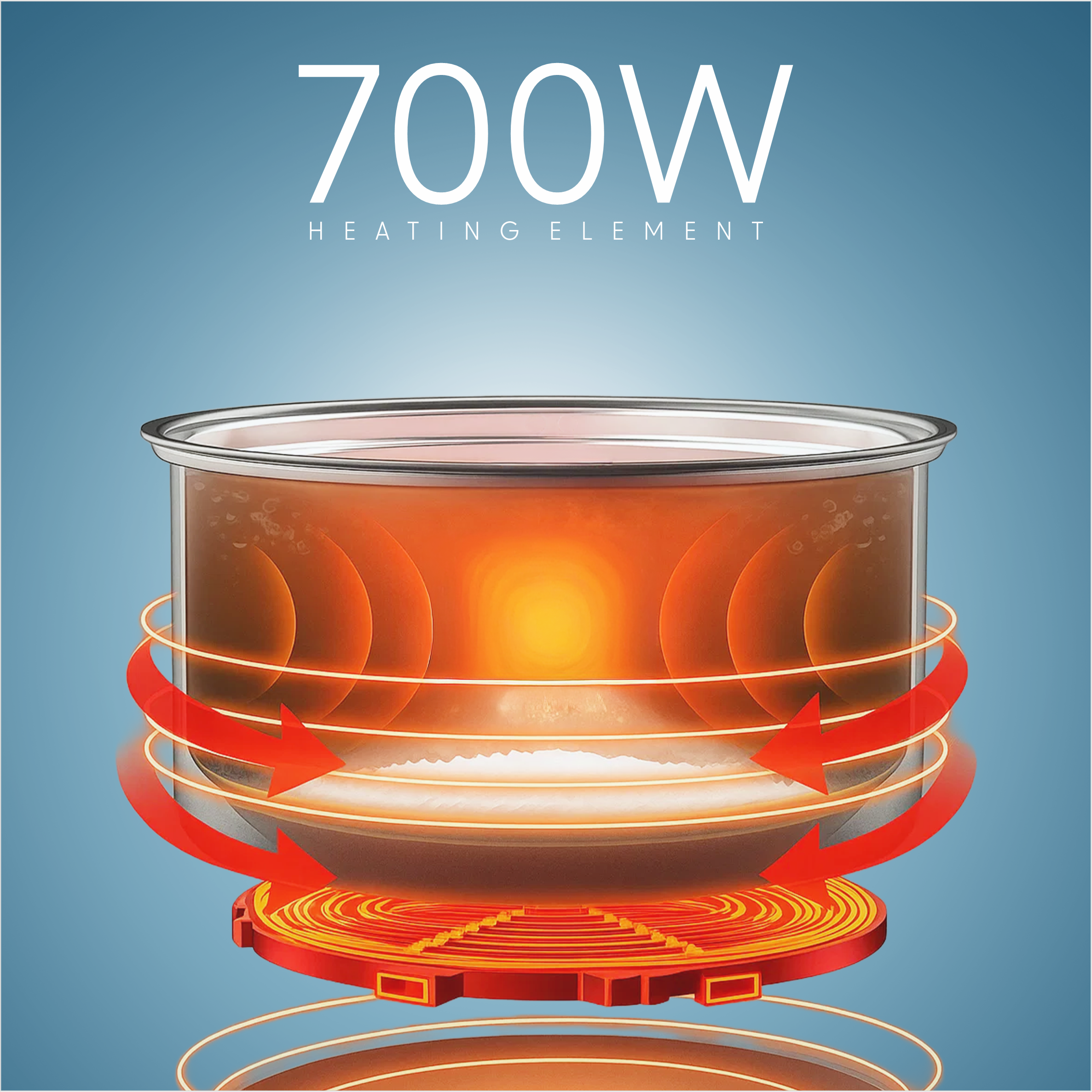 700W Heating Power : With 700W high-efficiency heating, the CRC18 Electric Cooker ensures faster and even cooking, saving time while delivering perfectly cooked meals every time.