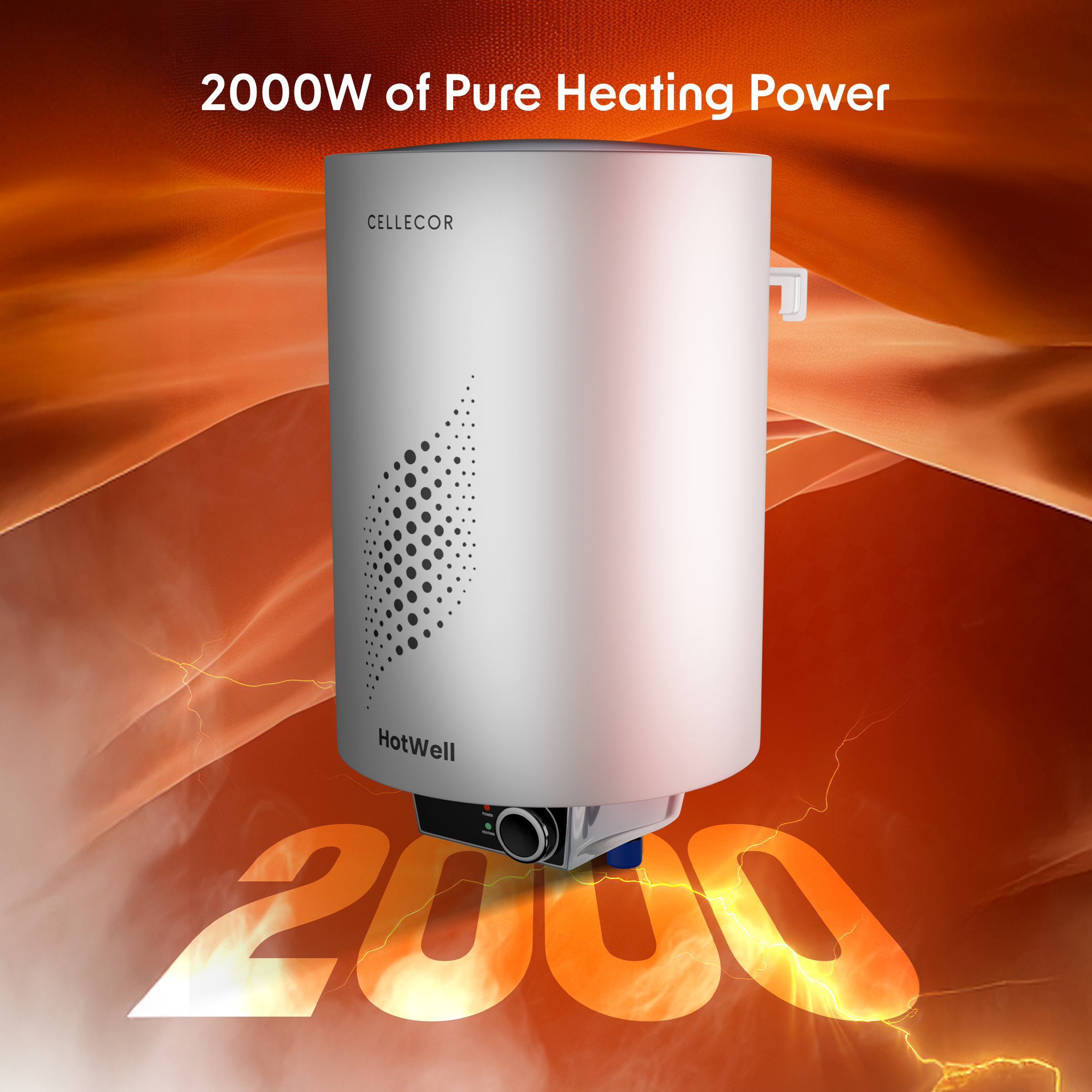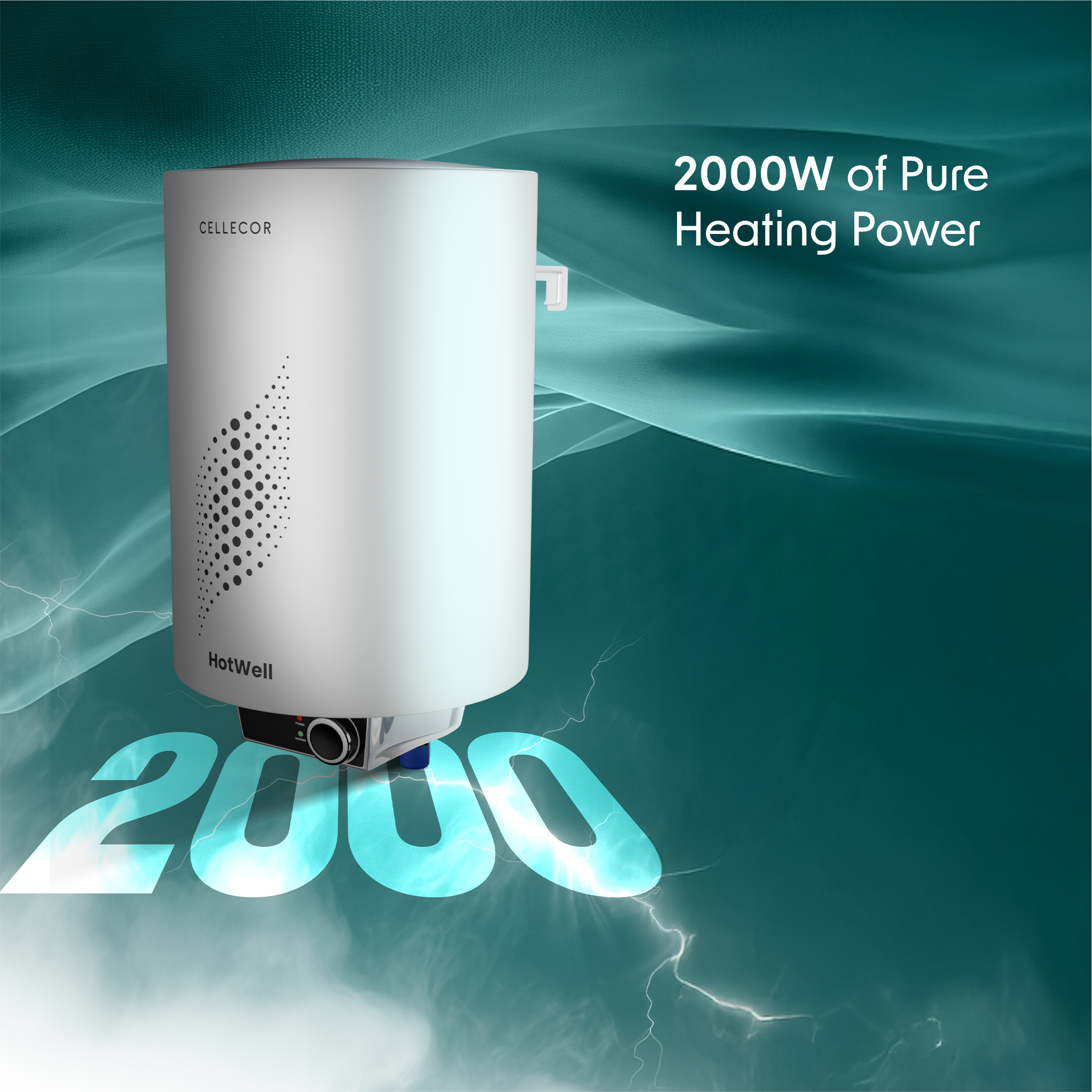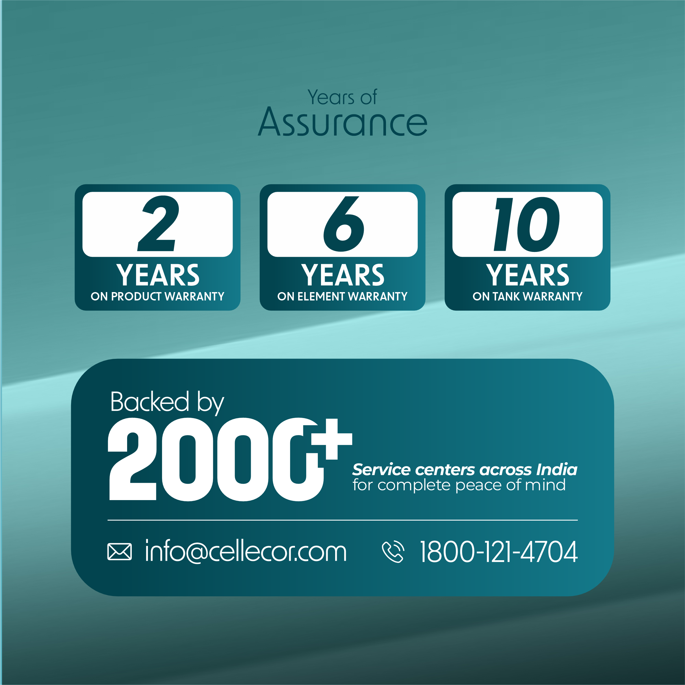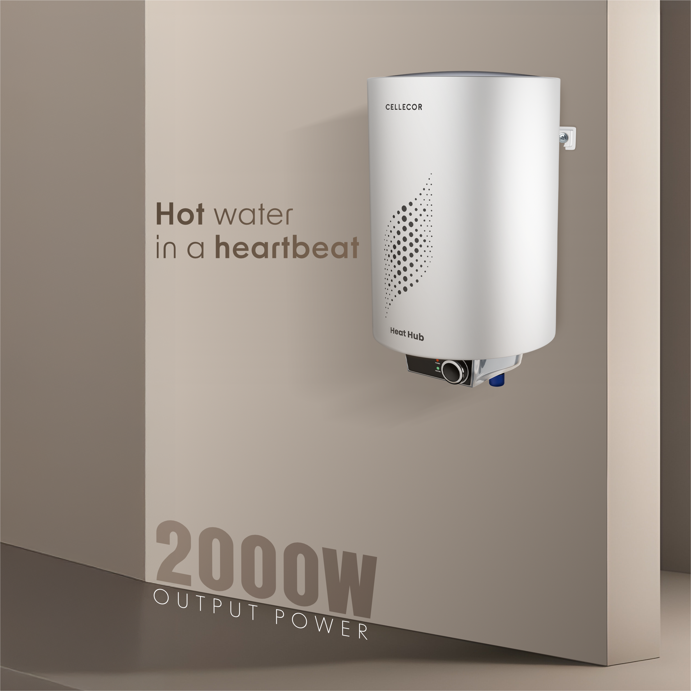 Multiple Capacity Options : Available in 10L, 15L & 25L, Cellecor geysers offer 2000W fast heating, instant-style performance, a durable glass-lined anti-rust tank, and 8-bar pressure support for every home and bathroom.