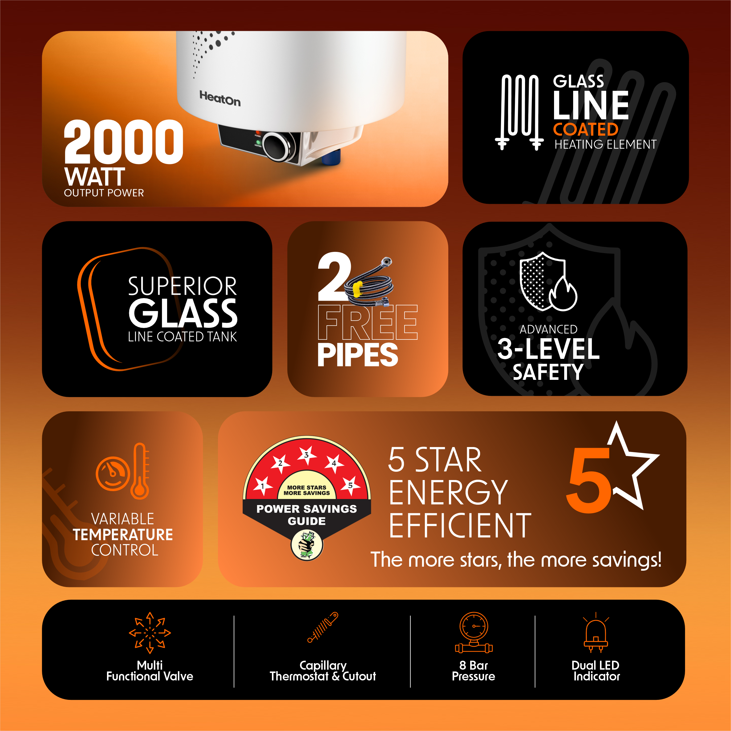 Free Installation & Pipes : Zero-hassle setup included with the electric geyser.