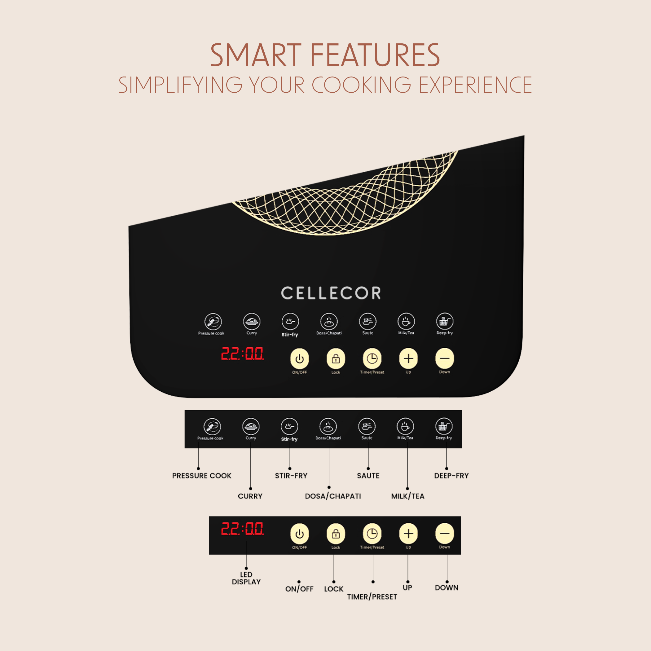 Powerful 2000 Watts : Cellecor Induction Cooktop delivers high performance for faster cooking with efficient heat as it features 2000W power output.