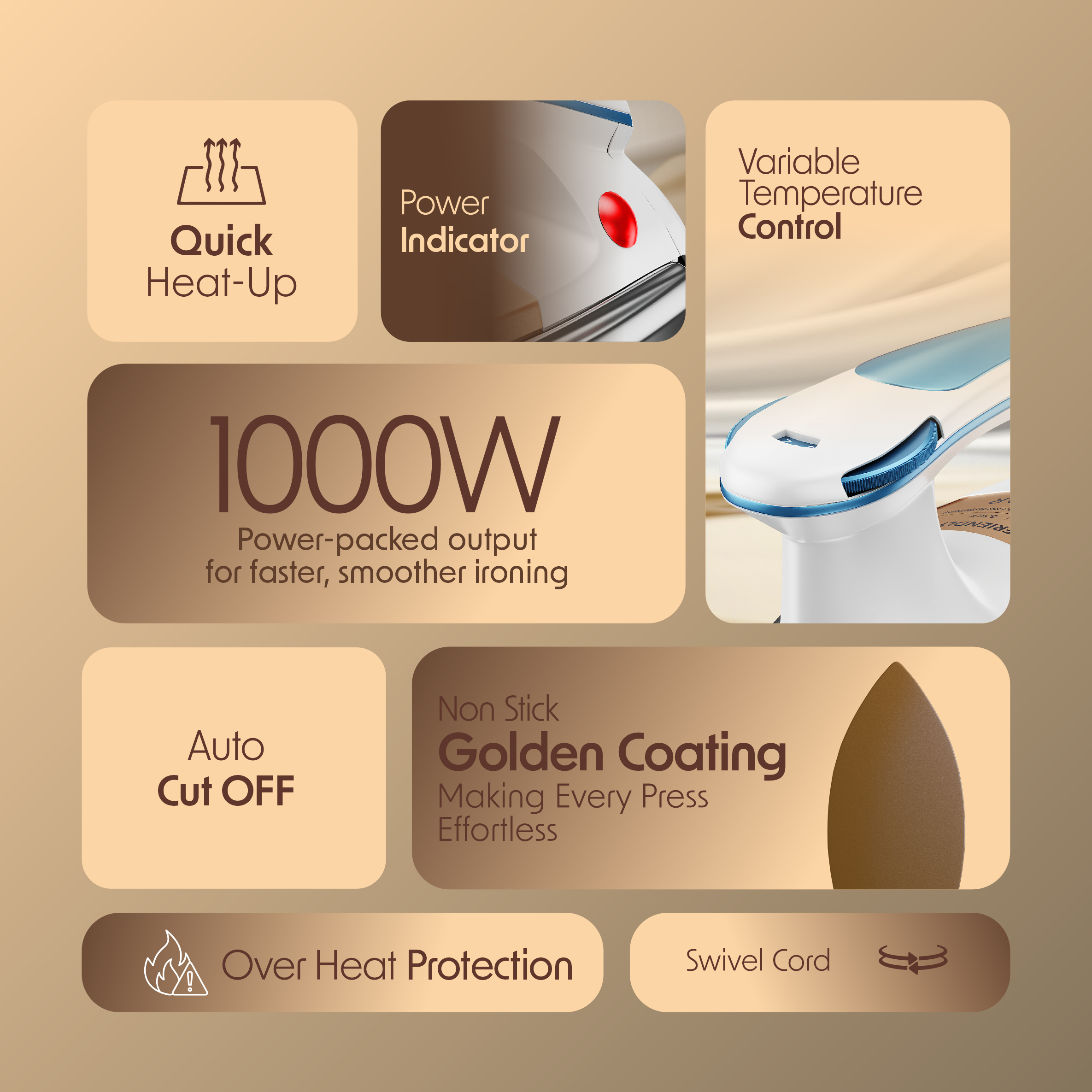 1000W Heating Power: The Cellecor Ironix Electric Dry Iron features a powerful 1000-watt heating element that delivers fast and consistent heat for efficient ironing.