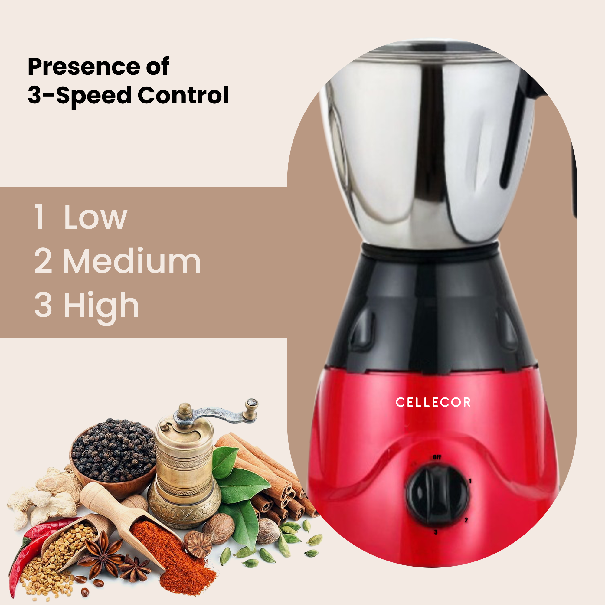 Cellecor GMC 750 Mixer Grinder with 750W Powerful Motor, 2 Heavy Duty Stainless Steel Jar, Overload Protector, 3 Speed Control and Double Lock System