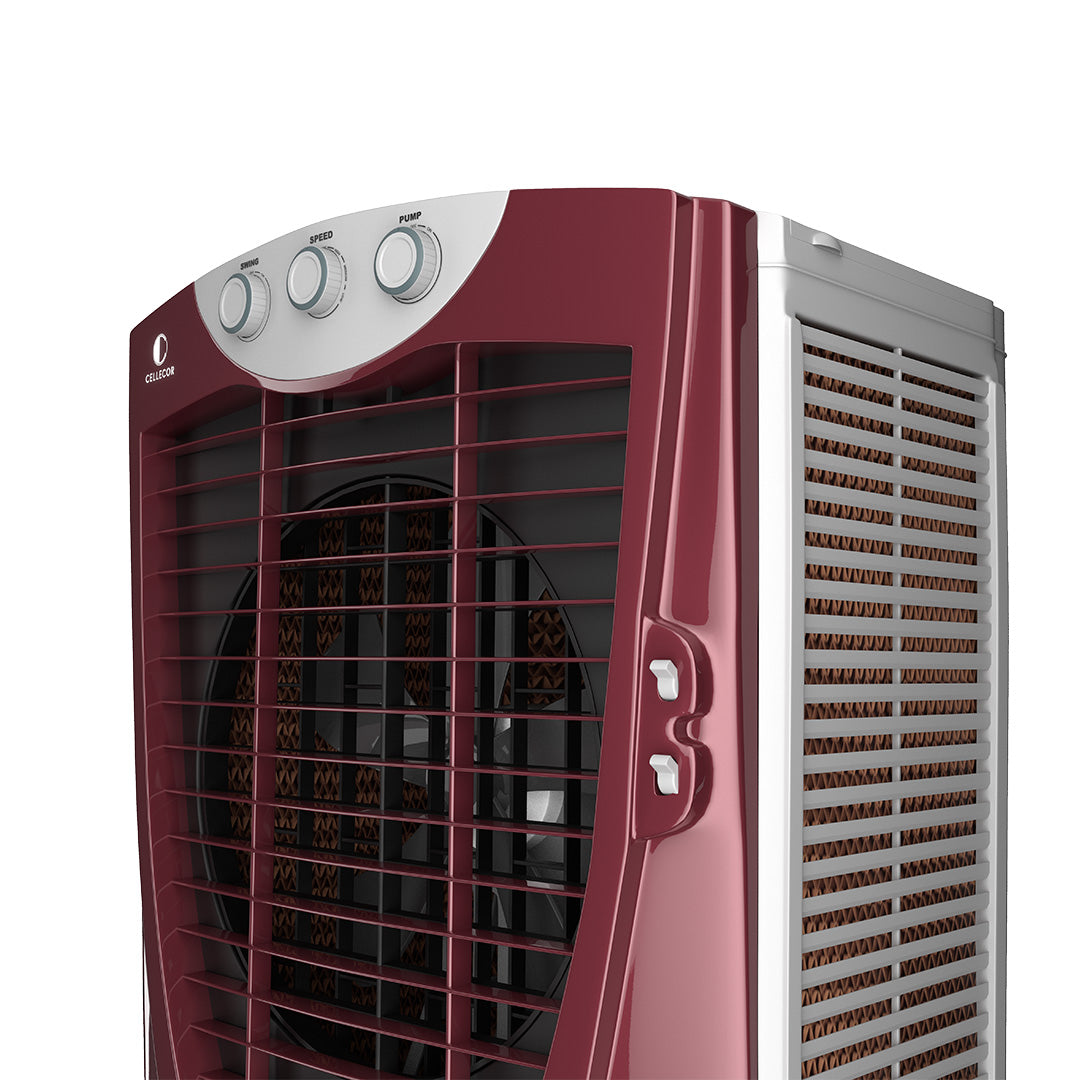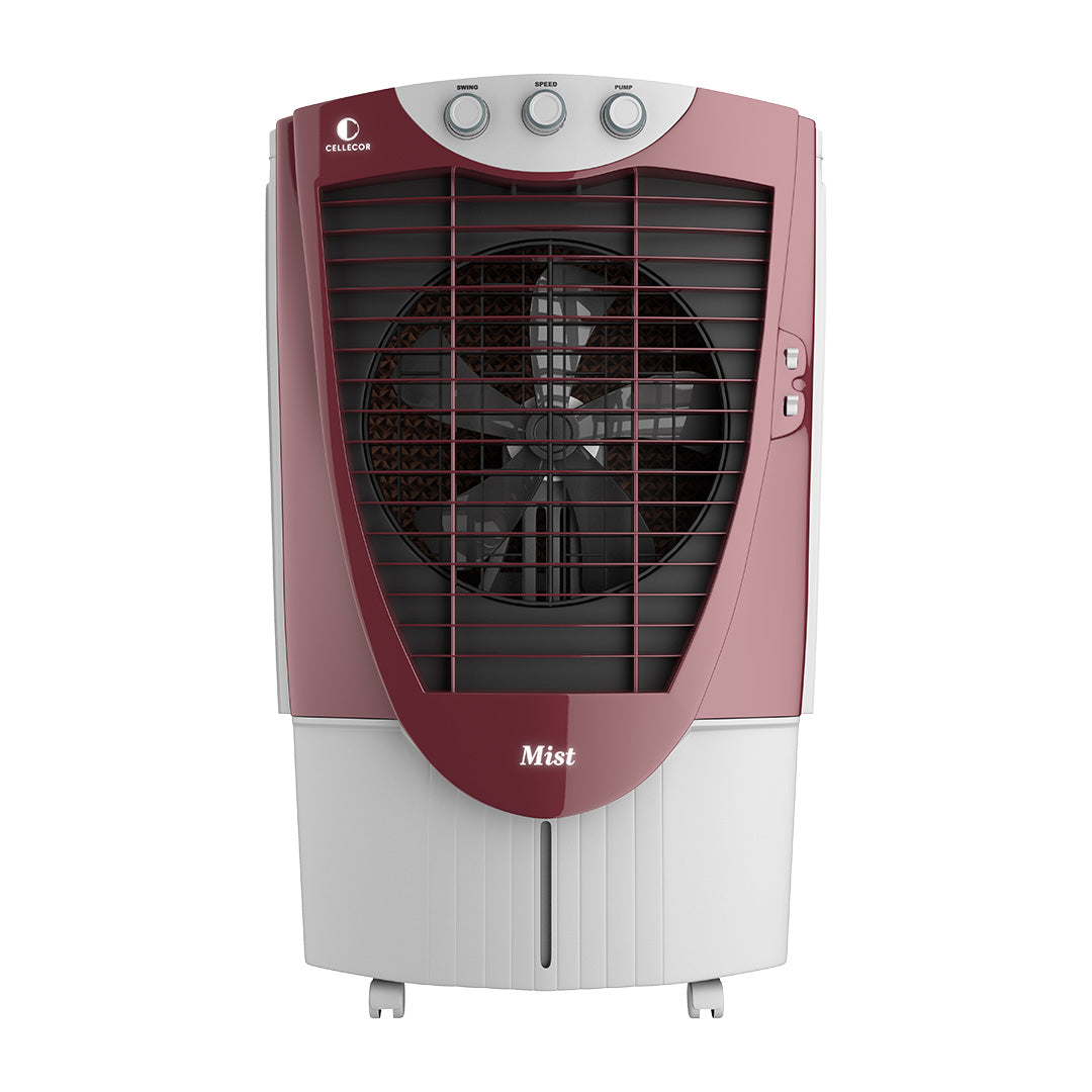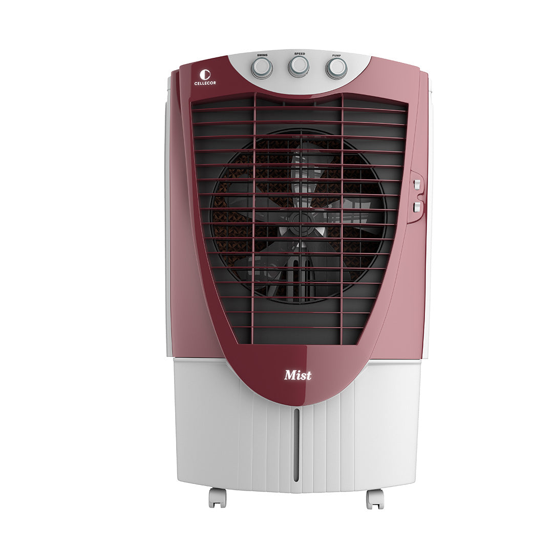 Stay cool and comfortable with the Cellecor Mist Air Cooler, designed for powerful performance and everyday convenience. It features a strong 45 ft air throw for wide coverage, triple-side honeycomb pads for faster, cleaner cooling, and an ice chamber for an instant chill on scorching days. Built for ease, it runs smoothly on inverters during power cuts and moves effortlessly with 360° wheels and front brakes for stability. Backed by a 1-year warranty, it’s a reliable and user-friendly cooling solution for your home.