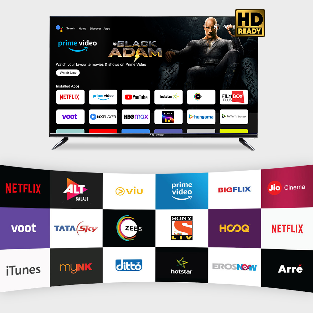 CELLECOR E-32P (32 inch) HD LED Smart Android TV, 24W Dual Speakers Sound, Latest Bluetooth Connectivity, Android Version, Chromecast Built-In