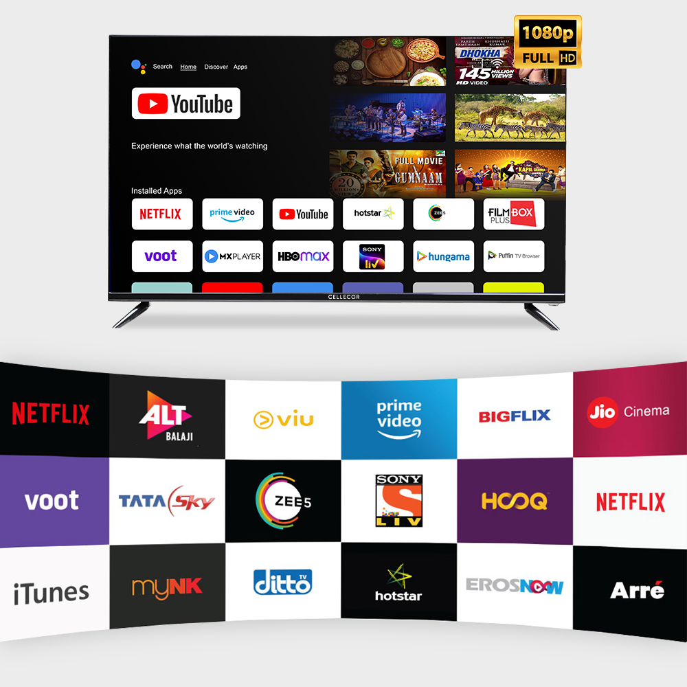 Cellecor Smart TV E-40P( 40 inch ) FHD HD LED Smart Android TV with 1920x1080 resolution, 24W Dual Speakers Sound, Latest Bluetooth Connectivity, Android Version, Chromecast Built-In & Google Assistant
