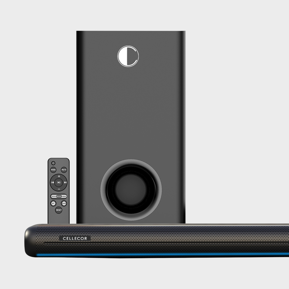 Cellecor Tim Bar 180W Wireless Bluetooth Soundbar with 2.1 Channel, USB, HDMI, AUX, Bluetooth, Optical, Sleek & Minimal Design.